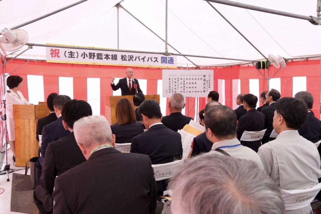 18日午前10時から、松沢バイパスの開通式があり、加東市選出の藤本県議と共にお祝いを申し上げました。藤井国会議員、両市の市長、議長等多くの来賓も出席されました。