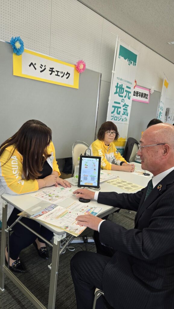 午後はエクラで、健康・福祉フェアーがあり、各ブースを廻らせて頂き、血管年齢等のチェックを受けました。私は実年齢と同じでした。もう少し緑黄色野菜を食べるように指導もいただきました。健康が一番気をつけます。