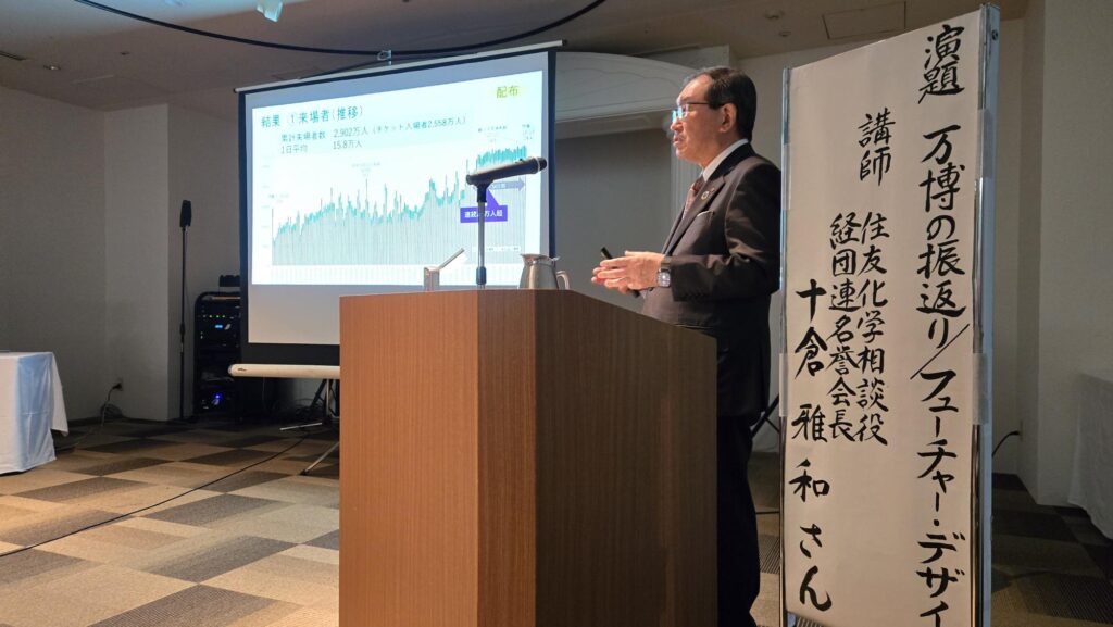 夕方から西脇ロイヤルホテルで、元経団連会長で万博協会会長を務められた十倉雅和さんの講演会があり参加させて頂きました。西脇市出身です。大阪関西万博の総括(満足度75%)や現在の経済社会(個人消費の拡大が大事)、混迷の国際社会(厳しい現実)のこと等多方面にわたり貴重なお話を頂きました。