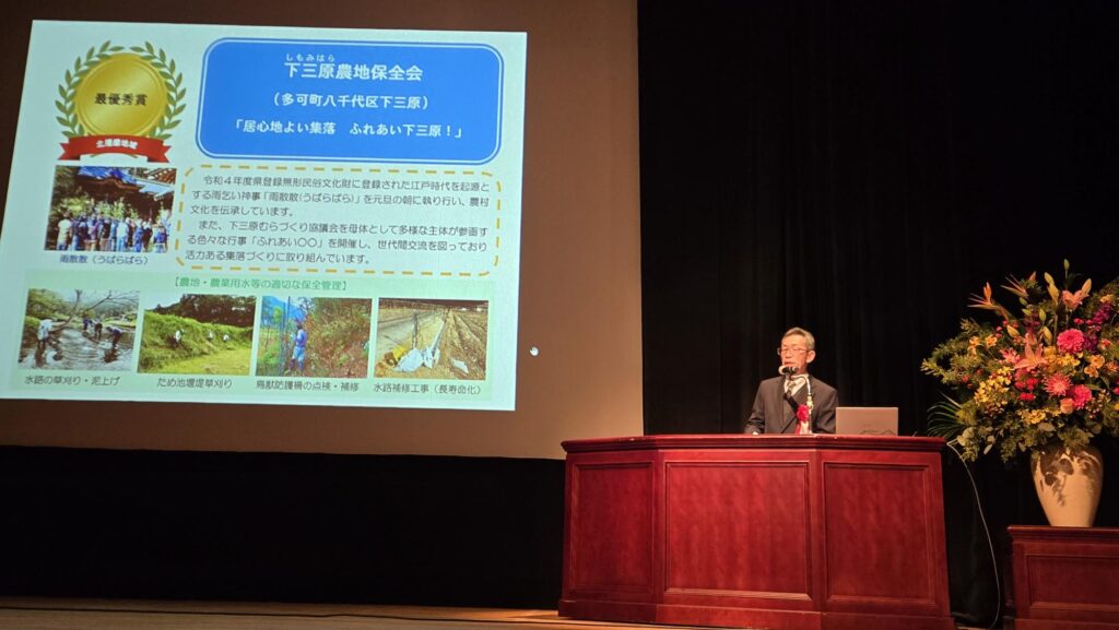 本日午後、三木市文化会館で多面的機能保全向上活動発表会(優良地区表彰と事例発表会)があり、来賓としてお祝いを述べました。地域の農業や環境を守るには地域の皆が力を合わせるしかない。